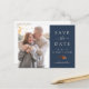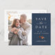 Navy Blue Fall Terracotta Feuilles Photo Enregistrer La Date Annonce Carte Postale. Cette carte postale élégante et rustique, à la fois mariage, présente des feuilles d'orange brûlé et de terre cuite peints à la main sur un arrière - plan taupe, parfait pour un mariage d'automne ou d'automne !