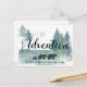 L'aventure attend, bois rustique ours faire-part de grossesse avec une famille d'ours se baladant sur un arrière - plan blanc. La typographie "aventure" est un style de calligraphie tourbillonnante et rustique. Style rustique et mignon.