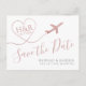 Rose Gold Blush Pink Destination Wedding Sauvegardez la date Carte postale avec un amusant monogramme du coeur d'avion, plus élégante typographie moderne minimaliste. Cliquez sur "Customiser plus loin" pour obtenir des fonctionnalités d'édition supplémentaires telles que la modification de la couleur du texte, de la police et de la disposition. Idéal pour tropicale, plage, île, ville, montagne et aventure destination de mariage vos invités sont à destination. Consultez notre magasin de créateurs pour trouver des tonnes d'articles de coordination!