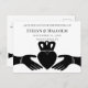 Ces cartes postales d'enregistrement de date de mariage ont une illustration simple de style dessiné à la main d'un cœur Claddagh irlandais traditionnellement trouvé sur les bagues Claddagh. Le graphique est en noir sur fond blanc