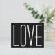 Design de texte "LOVE" noir et blanc dans une police simple et élégante sur le devant. Coordonner Enregistrer les informations de date pour votre mariage au verso.