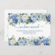 Carte Postale Faire-part Bleu Blanc Floral Fleurs Script Déplacement