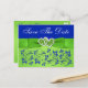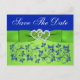 Carte Postale Faire-part Bleu, Flore verte, Coeurs Enregistrer la date Cart