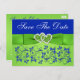 Ce romantique bleu royal et vert citron sauve la date carte postale a un ruban et un arc de chartreuse IMPRIMÉ avec une paire de bijoux en diamant IMPRIMÉ et parties scintillant FAUX (simulé) joint le coeur sur elle qui correspond aux invitations de mariage ci-dessous. Si vous avez besoin d'autres articles correspondants, veuillez envoyer un courriel à niteowlstudio@gmail.com avec votre demande.
