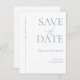 L'amour moderne mérite une invitation moderne. Cette élégante carte "save the date" de mariage présente une mise en page minimaliste et épurée avec une typographie bleue intemporelle et un script vertical qui indique "où commence l'éternité". Idéal pour les thèmes de mariage contemporains, romantiques ou luxueux, le design équilibre la simplicité avec une chaleur émotionnelle. Personnalisable avec vos noms, date, lieu et tous les détails clés.