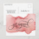 Carte Postale Faire-part Blush Rose Gold Aquarelle Fiançailles, Engagement