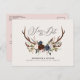 Scénario de bois rustique marine bordeaux rose vif mariage floral enregistrer la date carte postale. Fait partie d'une collection moderne.