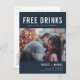Cartes de sauvegarde de mariage drôles dans une couleur bleu marine moderne avec une conception de texte blanc et votre photo personnalisée qui dit "Boissons gratuites (et nous nous marions)". Personnalisez le devant de la carte avec votre photo horizontale (recadrez en rectangle avant de la télécharger pour de meilleurs résultats). Ajoutez vos noms, date et lieu de mariage. Personnalisez le verso de la carte avec les détails de votre mariage.