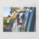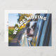 Carte postale "Changement d'adresse" avec la photo d'un boxer / chien avec la tête hors de la fenêtre d'une voiture.
