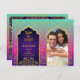 Conception du thème Bollywood Arabian Nights avec carte postale Enregistrez la date à effet pailleté et feuille d'or avec encart photo.