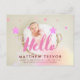 Carte Postale Faire-part Bonjour Script Rose Rêveur Bébé Naissance Photo