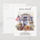 Annoncez votre déménagement en famille et entre amis avec notre faire-part mobile patriotique avec une belle aquarelle représentant un chien Boxer, maison moderne avec une porte bleue et le drapeau américain fièrement affiché sur le porche avant. Ce faire-part est parfait pour les amoureux de les chiens et tous ceux qui souhaitent annoncer leur nouvelle adresse. Avec ses couleurs rouge, blanc et bleu, cette faire-part est une excellente façon de montrer votre amour pour les USA tout en partageant vos nouvelles passionnantes. Faites savoir à tout le monde que "Nous avons déménagé!" et les invitations de venir visiter et rencontrer votre meilleur ami dans votre nouvelle maison. DROIT D'AUTEUR © 2023 Judy Burrows, Black Dog Art - Tous droits réservés. Boxer Chien Patriotique Personnalisé Animaux de compagnie Moteur Carte postale Faire-part
