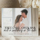 Notre mariage enregistrer la date carte postale dispose d'un script de brosse d'écriture moderne sur votre photo fiançailles.