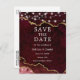 Elégante aquarelle moderne Bourgogne et or Marbre Agate Geode Enregistrer la date Carte Postale avec des lumières à cordes
