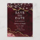 Carte Postale Faire-part Burgundy Gold Marble Lumières Géode Enregistrer La