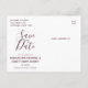 Carte postale Save the Date de mariage avec cadre géométrique aquarelle Bourgogne et rose gold avec police de caractère script tendance ! ~ Découvrez ma boutique pour voir la collection de mariage complète avec ce design !