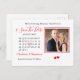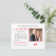 Un mignon enregistrer la date avec les coeurs d'amour rouge sucré et texte de script fantaisie sur une simple carte postale blanche; facile à customiser avec votre photo personnelle, les noms et la date du mariage sans frais supplémentaires N'oubliez pas de cliquer sur la personnaliser pour déplacer le coeur sur le calendrier pour marquer votre date.