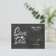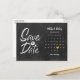 Cette carte de sauvegarde de date boho comprend un calendrier et un joli cœur d'amour en or mettant en valeur votre date spéciale sur un fond de tableau noir. Le verso contient des détails supplémentaires sur la sauvegarde de la date, y compris votre site web de mariage, avec votre adresse de retour et un espace pour l'adresse de votre destinataire.