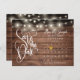 Cette jolie carte de sauvegarde de date présente des guirlandes lumineuses et un calendrier ainsi qu'un joli cœur d'amour en or mettant en valeur votre date spéciale sur un fond de panneaux de bois rustique.