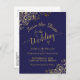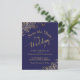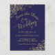 Cette belle carte postale à l'exception de la date dispose d'un design magnifique avec un arrière - plan bleu marine, la calligraphie de script or, et frileusement orné de faux boucles et tourbillons dans les coins. Le dos a de la place pour une note personnalisée avec votre site Web et d'autres informations. Belle façon de faire connaître votre prochain mariage à vos amis et à votre famille.