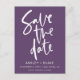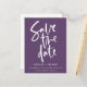 Purple Modern Script Simple Calligraphie manuscrite Mariage Enregistrer la date Faire-part Carte postale