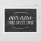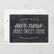 Cette jolie annonce de changement d'adresse rustique présente la phrase "Notre nouveau chez-nous" écrite en élégante calligraphie "crayonnée", un cadre de laurier, et un fond de tableau noir. Ajoutez votre nouvelle adresse au verso de la carte postale.