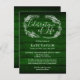 Une carte de voeux de célébration de la vie rustique rappelant une invitation, avec une guirlande de feuillage dessinée à la main sur un fond de panneaux de bois vert. Conçue par Thisisnotme©