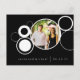 Un noir et blanc moderne enregistrer la carte postale date avec plusieurs cercles et une photo du couple heureux. Pour plus de renseignements sur ma papeterie mariage, veuillez visiter le site www.darmanddesigns.com