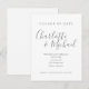 Avec des noms de style signature, cette élégante carte de changement de date gris et blanc peut être personnalisée avec vos informations de report en lettrage gris chic. Conçu par Thisisnotme©