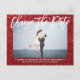 Vous devez reporter ou annuler votre mariage ou célébration en raison de circonstances imprévues ? Montrez à vos invités que votre amour continue avec votre photo de fiançailles préférée sur cette carte postale moderne d'annonce de changement de date de mariage à paillettes rouges.