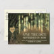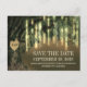 Live Oak Tree Spanish Moss Save The Date Cards - dispose d'un arrière - plan vintage avec un chêne vivant dans lequel vous pouvez "graver" vos initiales. La mousse espagnole et les lumières verticales à cordes pendent des branches. Voir la collection complète et magnifique de ce design sur cette page.