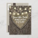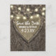 String Lights Carved Oak Tree Save The Date Cards - présente un arrière - plan d'écorce de chêne imprimé avec un coeur sculpté à l'avant et des lumières à cordes élégantes au sommet. Voir la collection complète ci-dessous.