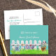 Cartes d'annonce d'adresse avec une clôture blanche emblématique. Cette illustration aquarelle de rêve d'un joli jardin présente un rouge-gorge mignon, un papillon, de la lavande et des pensées sur la pelouse, devant la clôture blanche. Le design est sur un fond sarcelle clair avec une typographie manuscrite grise pâle. Le texte au verso indique "Nous avons déménagé et aimerions que vous ayez notre nouvelle adresse", suivi de votre nouvelle adresse, message (facultatif) et noms. Ce design est disponible sur d'autres types de cartes d'annonce avec des fournitures de mailing coordonnées. Veuillez parcourir notre collection de nouvelles adresses pour des modèles alternatifs.