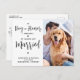 Laissez votre meilleur chien annoncer votre mariage avec cette super mignonne "As Dog of Honor, I announce ... 'My Humans Got Married' mariage de chien de compagnie carte de faire-part. Que vous soyez parti ou que vous ayez un petit rassemblement familial, ces cartes sont parfaites pour envoyer à la famille et aux amis pour leur faire part de vos bonnes nouvelles ! Customisez avec votre photo préférée et personnalisez avec les noms, la date et l'emplacement du mariage. Ce chien faire-part mariage sera un succès avec votre famille et vos amis. DROIT D'AUTEUR © 2020 Judy Burrows, Black Dog Art - Tous droits réservés. Carte postale du Mariage de chien d'honneur juste marié