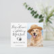 Faites annoncer vos fiançailles par votre meilleur chien avec ces cartes de fiançailles pour chien modernes et élégantes "En tant que 'chien d'honneur', j'annonce que 'mes humains se marient'". Personnalisez avec votre photo préférée et ajoutez les noms, la date facultative et le message de fiançailles. Cette annonce de fiançailles pour chien fera sensation auprès de votre famille et de vos amis. COPYRIGHT © 2020 Judy Burrows, Black Dog Art - Tous droits réservés. Carte postale moderne d'annonce de fiançailles de mariage pour animal de compagnie avec photo de chien d'honneur.