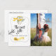Jolie chouette jaune et gris thème de Noël faire-part de grossesse avec une chouette de maman, un nid avec des oeufs et une couverture de flocons de neige.