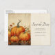 Carte postale pour sauvegarder la date avec une illustration rustique avec des citrouilles oranges et des feuilles d'automne. Une ambiance grunge rustique.