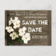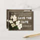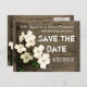 Beau mariage rustique et chic Save The Date carte postale, avec une photo graphique améliorée d'une clôture rustique en bois. De jolies fleurs blanches décorent le coin inférieur gauche de la carte. Texte en blanc sur le devant, est entièrement personnalisable pour répondre à vos besoins mariages. La même conception est au dos de la carte, avec une zone de texte blanc transparente pour l'écriture d'adresse. Produits mariages correspondants disponibles.