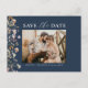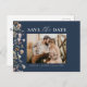 Carte Postale Faire-part Code QR Bleu Marine Fleur de Fleuriste Mariage Flo