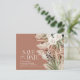 Carton d'invitation de mariage à la ferme rustique moderne avec fleurs botaniques bohèmes, herbe de pampas naturelle et eucalyptus botanique. Élégant floral aquarelle de classe dans des tons terracotta, vert sauge, crème naturel et noir. Espace au dos de cette invitation de mariage économique pour des informations et un code QR pour tous les détails de votre mariage.