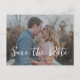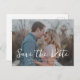 Un simple et moderne enregistrer la carte postale de l'annonce de la date avec votre photo horizontale/paysage préférée superposée avec "enregistrer la date" en caractères blancs modernes manuscrits. La couleur de cette option est modifiable. Personnalisez davantage en ajoutant les détails de votre site Web mariage avec un code QR au verso.