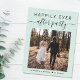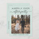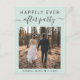 Faire-part de mariage ou d'élopement moderne de couleur vert menthe clair et carte d'invitation pour la réception. Le recto présente votre photo et "Happily Ever After Party" dans une typographie simple et un script tendance avec fioritures. Sous votre photo, ajoutez vos prénoms et la date du mariage. Au verso, personnalisez votre message et votre invitation, entrez l'URL de votre site web de mariage pour créer un code QR que vos invités pourront scanner pour obtenir plus d'informations et répondre en ligne, et ajoutez vos noms dans un script ressemblant à une signature.