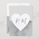 Carte Postale Faire-part coeur d'amour avec initiales mariage marbré gris