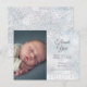Une élégante carte de remerciement pour annonce de naissance de bébé en hiver. Personnalisez avec votre message de remerciement d'annonce spéciale de bébé en ajoutant le nom de votre bébé et les statistiques de naissance en lettrage chic sur un fond de givre hivernal. Conçu par Thisisnotme©