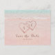 Carte Postale Faire-part Cœurs roses sur la plage dans le sable enregistrer