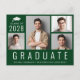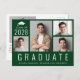 Carte d'annonce de diplôme vert minimal moderne avec un collage de 4 photos, le mot "Diplômé" écrit en bas en grandes lettres blanches et son année de promotion, son nom et son école ou université en typographie blanche simple. Au verso, ajoutez une photo supplémentaire et un message personnalisé.