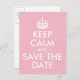 Vous pouvez créer votre propre mariage, sauf la date parodique "Keep Calm and Carry On". Customisez la couleur arrière - plan rose pâle. Forme classique de couronne blanche. La carte postale est personnalisable avec un visage, un style ou une taille de police différents. Si vous devez changer la taille de la police, nous vous suggérons de sélectionner tous les éléments et de modifier la taille de l'ensemble de la conception en même temps. Ajoutez du texte pour personnaliser l'arrière-plan avec des informations sur votre date, heure et lieu de mariage. Concevez votre propre personnalisation enregistrer la date carte postale.