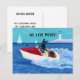 Carte postale d'annonce de nouvelle adresse de Cool Summer Labradors. Peinture fantaisiste et drôle de Labrador en été peinte par Naomi Ochiai. Des chiens super cool Labrador Retriever s'amusent avec leur bateau à moteur en mer. Le conducteur Labrador jaune est aussi cool que la glace !! Le Labrador noir pose comme une star !! Et le Labrador chocolat se tient pour sauver sa vie. Agréable pour les amoureux des chiens qui adorent les Labradors. Belle vue d'été avec des Labradors, la mer, un bateau et un phare.