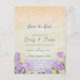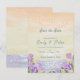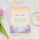 Faire-part de mariage élégant sur le thème de la côte - Carte aquarelle avec coucher de soleil et motifs floraux.