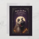 Cette carte de sauvegarde de mariage gothique représente un couple de squelettes portant une tenue de mariage avec des roses rouges et des bougies dans un cadre romantique devant un lac la nuit avec la lune en arrière-plan. Le verso de la carte postale comporte l'image du couple de squelettes et les détails de votre mariage à remplir. Image générée avec l'IA.